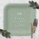 Simple Solid Colour Leaf Green Wedding Monogram Paper Plate