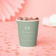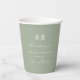 Simple Solid Colour Light Green Wedding Monogram Personalised Paper Cups. This modern wedding or any event Paper cup design is simple and minimal with a plain solid background colour and trendy signature calligraphy script fonts. Shown in the new Wedding Colour Palette. Also features a simple monogram on the top. The Chic Minimal Wedding collection is sure to make your wedding memorable and beautiful!