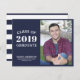 Traditional varsity lettering with single photo. Background and text can be changed to match your school colours. Easy and affordable do-it-yourself template. Add your own photos and custom text, or choose "Customise It" to change the layout, size, style or photo options. Optional stripes backer can be altered if you wish to add more photos, future plans, a thank you message, or graduation party information.