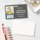 This simple and humble staff member badge design features customisable information such as a portrait photo, a business/company logo, a staff member name, and a job/role/title name. A badge like this could maybe be used to show that somebody at a business or workplace is an authorised and identified staff member. [~Z0000450]