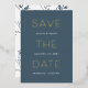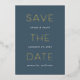 Modern save the date design in chic smoky teal blue features sans serif and italic lettering in crisp white, with your names, wedding date and location interspersed with "save the date" in gold. Personalise with your invitation info and/or wedding website on the back. An elegant save the date design for modern couples with a minimalist aesthetic.