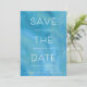 Modern yet coastal save the date design in features sans serif and italic lettering in crisp white, with your names, wedding date and location interspersed with "save the date." A watercolor wash background in rich ocean tones of turquoise, teal and blue adds elegant beach charm. Personalise with your invitation info and/or wedding website along the bottom. A beachy chic save the date design for summer, destination or beach weddings.