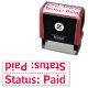 This simple rubber stamp design features the message "Status: Paid". It could perhaps be used to indicate that a bill or invoice has been paid.