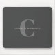 Simple Stylish Chic Monogram Name Black and Grey Mouse Pad