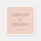 Add a touch of sophistication to your wedding decor with these elegant personalised napkins in a soft blush and grey colour scheme. Featuring the couple’s names and wedding date in a classic serif font, these napkins are perfect for elevating the table settings at any modern or traditional wedding. Ideal for a romantic and refined celebration, these napkins make a thoughtful detail for your guests to enjoy while commemorating your special day.