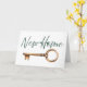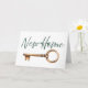 Wish family or friends good luck in their new home with this charming and simple card. The design features 'New Home' words in elegant green script, and a classic door key design. The message inside is 'Good luck in your new home', and can be customised.