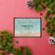 Simple, modern summer seaside beach wedding invitation. Modern seafoam and sand with a hint of blue art drawing