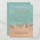 Simple, modern summer seaside beach wedding invitation. Modern seafoam and sand with a hint of blue art drawing