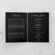 Customise this modern, simple funeral program with your own photo and text to create a special tribute to your loved one. An 'In Loving Memory' program featuring traditional black background with white typography. On the front cover a photo of your loved one, their name, dates, the memorial venue and date of the event. On the inside is an obituary and order of service; and on the back you have the option to add two further pictures, a thank you note and the venue of the wake. The text is a combination of handwritten calligraphy script and curviture serif font. All text is easily editable. If you need any help customising this, please message me using the button below and I'll be happy to help.
