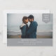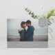 Simple traditional typography, photo tag, wedding save the date card. Design features, single horizontal photo, white typography and trendy grey colour backgrounds.