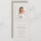 Elegantly sweet birth announcements feature your favourite newborn baby photo on a light taupe background with a dark taupe and white frame, your baby's name, birth stats and your names in any font you want below. On the back, change the background colour under white polka dots to any colour that suits your photo or remove the polka dot overlay. You can add more photos on the back, too!