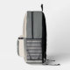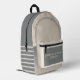 Tan grey backpack featuring a simple design with a few stripes. Add your custom quote.