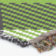 A quality printed throw has its advantages. This is a much finer weave throw than its loopier cousins, and though lighter, it is worth the investment for custom room accessorizing. The back is much prettier than the typical brown, and the fringe on the long sides very vivid, the selvage nicely done. Before photographing, I washed the throw in cold water, delicate, with a thicker woven throw the same size. On tumble dry low, this throw was dry in half the time as the other. This is a very practical quality if you use throws for furniture covers or to wrap up in frequently. The sleekness of the fabric makes it a great layer for accenting or protecting without the feeling of sitting on too much stuff. Perfect for napping or when you feel a light chill coming on. The color printing is beautiful and on this fabric, matched the design and color of my Photoshop image. This is an advantage for blending room fabrics and colors. The fringe on the short sides prints the colors from the design image and therefore varies from the side fringe. I streaked a white fractal line through the plaid pattern to give the illusion of weaving. This printed as crisp as an illusory thread, and put some white in the short side fringe, showing another advantage of print vs loomed- for artistic purposes, line lines, detail, and color integrity can be planned and preserved. My loomed throws have color limitations and more of a needlepoint texture. Print throws reproduce an exact image. The throw felt a little stiff straight out of the package, but this went away in the first delicate wash. Of course I searched the wash water for ink or bleeding and there was none.