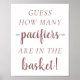 Counting Game Table Signage: Simple "Guess how many" (pacifiers, candies, socks, etc) baby shower or gender reveal party table sign featuring a fun, casual hand-lettered script. The classic design includes a modern handlettered quote typography overlay. For other colors or matching products, please visit the JustFharryn Zazzle store, or contact the designer, c/o Fharryn@yahoo.com All rights reserved. #bohochic #zazzlemade