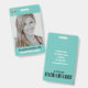 A minimalist and simple design featuring a teal coloured background, large photo, barcode and logo template. Easily customise this badge to your brand. -designed with ❤ by Zaubershirts-