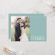 Thank your wedding guests for their attendance to your celebration and wedding gifts with these elegant teal green with photo wedding thank you cards. Upload your favourite wedding photo and add your thank you message to the backside of card.