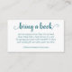 BOOK REQUEST CARD: Luxurious turquoise blue, aquamarine, seafoam, and white "bring a book" baby shower or gender reveal party enclosure card featuring a fun, casual hand-lettered script. The classic design includes a modern handlettered quote typography overlay along with a poem: "just one request and we hope it's not hard | please bring baby a book instead of a card | by signing your name we'll remember & share | your special gift even when you're not there" For other colours or matching products, please visit the JustFharryn Zazzle store, or contact the designer, c/o Fharryn@yahoo.com All rights reserved. #bohochic #zazzlemade