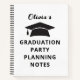 Simple Text Graduation Party Planner File. To jot down notes for your grad party planning. With graduate cap motif and simple Typography which you can easily personalise. You can also change text and background Colours if you wish via the edit further option.