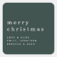 Simple Text Name Merry Christmas White Dark Green. Classy contemporary elegance for your holiday gift wrapping, with your greeting larger in stylish lowercase with your names beneath. Easily personalise the text to your own details. Fully customisable.
