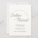 Simple, text-focused wedding invitation featuring an arc design