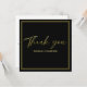 Express your gratitude with this thank you card featuring a simple, minimalist design in timeless black and gold. The elegant calligraphy script adds a touch of sophistication, while the clean layout reflects a stylish, classic style. Personalise it with your name and custom message to make each note truly special. Perfect for those who appreciate minimal elegance with a refined touch.