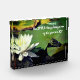 The simple things can bring some of the greatest joy inspirational words. Cute little bullfrog admiring a lovely white water lily lotus flower among the lilypads. Nature photography by Susan.