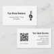 Simple music lessons business card, with a black and white design and a treble clef symbol. With black customisable lettering, you customise with your own information. You also add your website to allow for connection with a QR code. Great for promoting your music lessons or performing business.