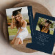 Simple but stylish, this graduation announcement and invitation features a trendy modern wavy edge along with simple typography to announce your graduate. With one large photo on the front and another on the back, this grad design a great way to show off two senior photos. The wavy edge is a classic navy blue colour with white text. The back is a coordinating navy blue with white type. The back also features room for graduation party invitation text or other information like future plans or a thank you. This original unique navy blue graduation announcement and graduation party invitation by Lea Delaveris Design is also available as a digital graduation announcement file download.