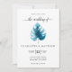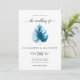 Modern minimalist wedding invitation design featuring watercolor monstera leaf illustration on a simple white background. Reverse side of the invitation is in deep blue colour.
