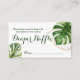 Modern Tropical Greenery Leaf Gender Neutral Baby Shower Diaper Raffle Activity Enclosure Card featuring fresh watercolor tropical palm leaves, gold foil leaves in green and white colours with pastel greenery background and minimalistic, simple design. Watercolor tropical design is the great way to invite guests to a gender neutral Cute Baby Shower. Matching products avalible, you can also ask me in massage for a needed item I can creating for you.