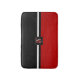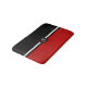 Elegant and simple two tone black and red colour design with black and white belt and initials monogram.