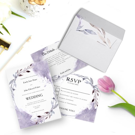 DREAMY PURPLE WATERCOLOR LEAVES WEDDINGDesigned by Sandra .