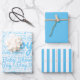 Enjoy this simple typography written pattern that has: Boy and Baby Shower written in english script in aqua blue and white background. Plus, a solid, aqua blue and a striped blue/white second and third sheet.