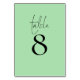 Simple Typography Celadon Green Script Wedding. A minimalist design with Table in a set handwriting style script and your table number beneath. Easily personalise the number. The same design is also on the back.