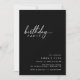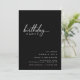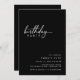 Black birthday party invitations with white text. Simple, text-only design that's suitable for any age.