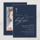 simple typography navy blue baptism invitation