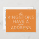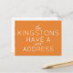 We Have a New Address Card Moving Announcement featuring a modern white script and font typography on an orange background.
