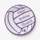 These custom volleyball birthday party paper plates feature a simple volleyball graphic with white panels, upon which you can customise your text - the volleyball's seams are represented by a purple background, which you can easily customise to ANY colour and then customise the text colour to match - by katz_d_zynes