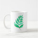 Minimalist watercolor botanical illustration with a simple green branch on a mug.