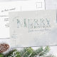 Stylish and simple holiday moving announcement card with watercolor snow scene and decorative letters with winter greenery. The wording reads "wishing you a merry christmas from our new home" and you can edit this to read "from my new home" if required. All of the wording on the back of the postcard is fully editable, ready for you to customise with your new address and message.