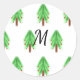 Simple watercolor Christmas pattern add monogram Classic Round Sticker