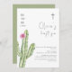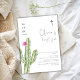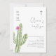 Simple Watercolor Cuctus Flower Cross Baptism Invitation