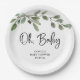 Simple Watercolor Greenery Oh Baby | Baby Shower Paper Plate