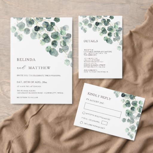 Simple watercolor eucalyptus leave gold foliage greenery. Matching wedding invitation available.