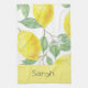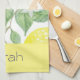 Simple Watercolor Lemon Leaves Yellow Monogrammed Tea Towel