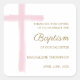 Simple Watercolor Pink Cross Baptism Thank You Square Sticker