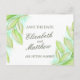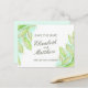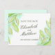 Simple loose wash style watercolor and pencil sketch of green spring leaves wedding save the date invitation postcard. Ideal of a simple woodland or garden wedding. Edit this green and aqua save the date card with your own words. Uniquely illustrated in pan watercolor and designed by Sarah Trett.