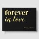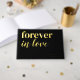 A modern wedding guest book featuring a stylish black background that can be changed to any colour, the title "forever in love", plus your names and wedding date in real gold foil. This can be changed to rose gold or silver.