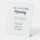 Honor the loved ones who are forever in your heart with this elegant black and white wedding memorial tabletop pedestal sign. Designed with a modern minimalist aesthetic, this In Loving Memory sign adds a meaningful and heartfelt touch to your wedding remembrance table. Customizable with your deceased loved ones names.