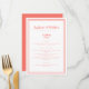 Simple, minimalist and elegant Wedding Menu features a contemporary design with a double frame border in living coral on a crisp white background. Traditional wording provides timeless yet modern sophistication. Personalise wedding design with your menu details in trendy coral lettering and script. The back of the card matches in solid coral.